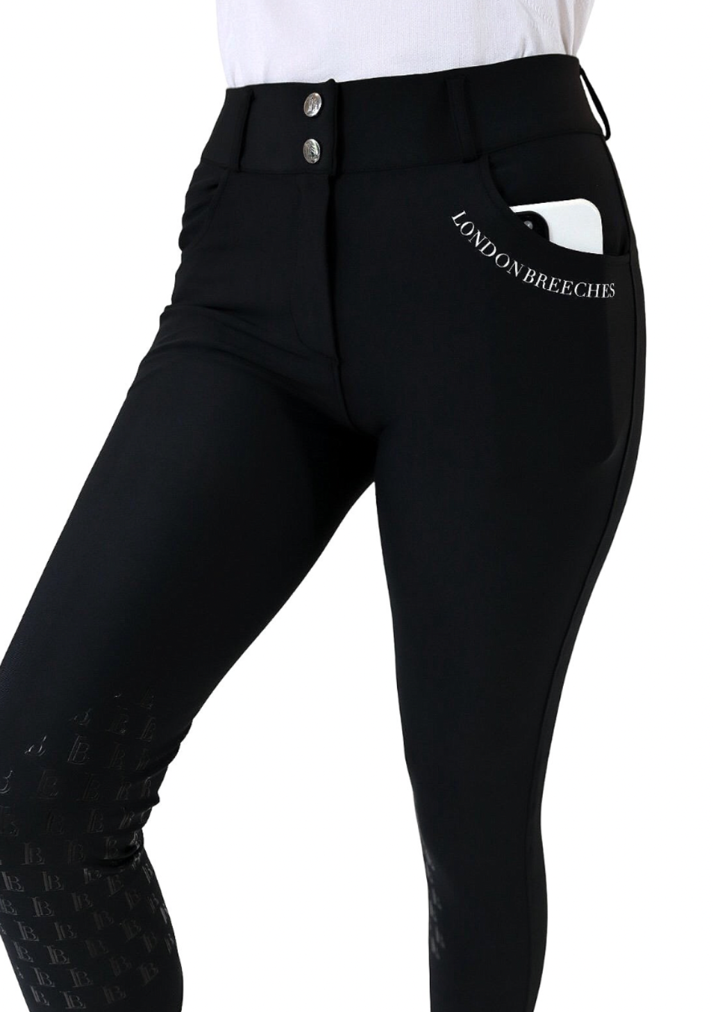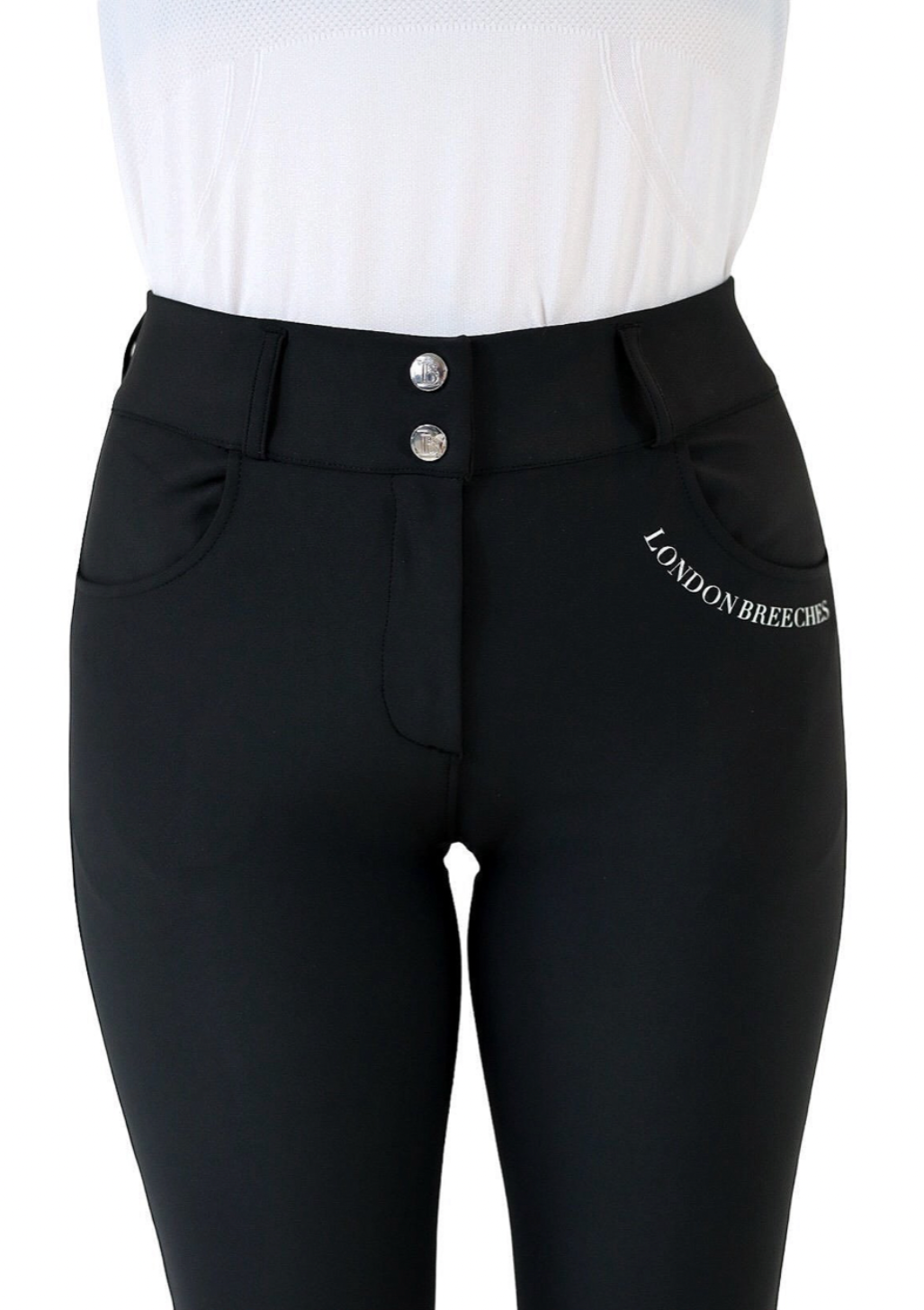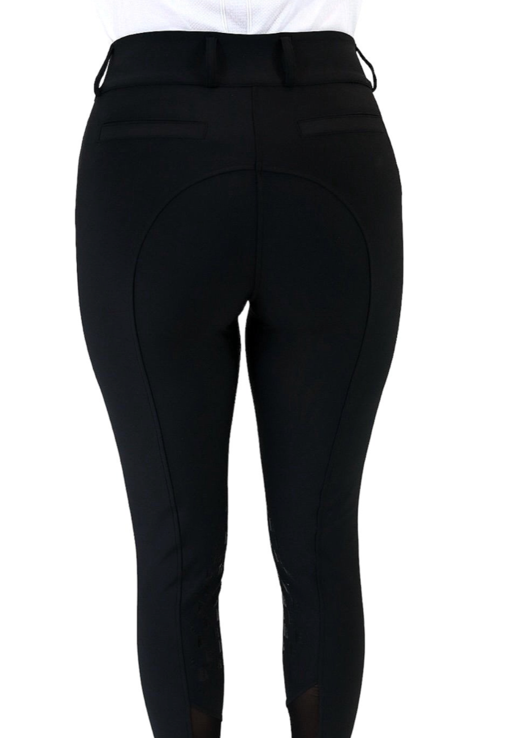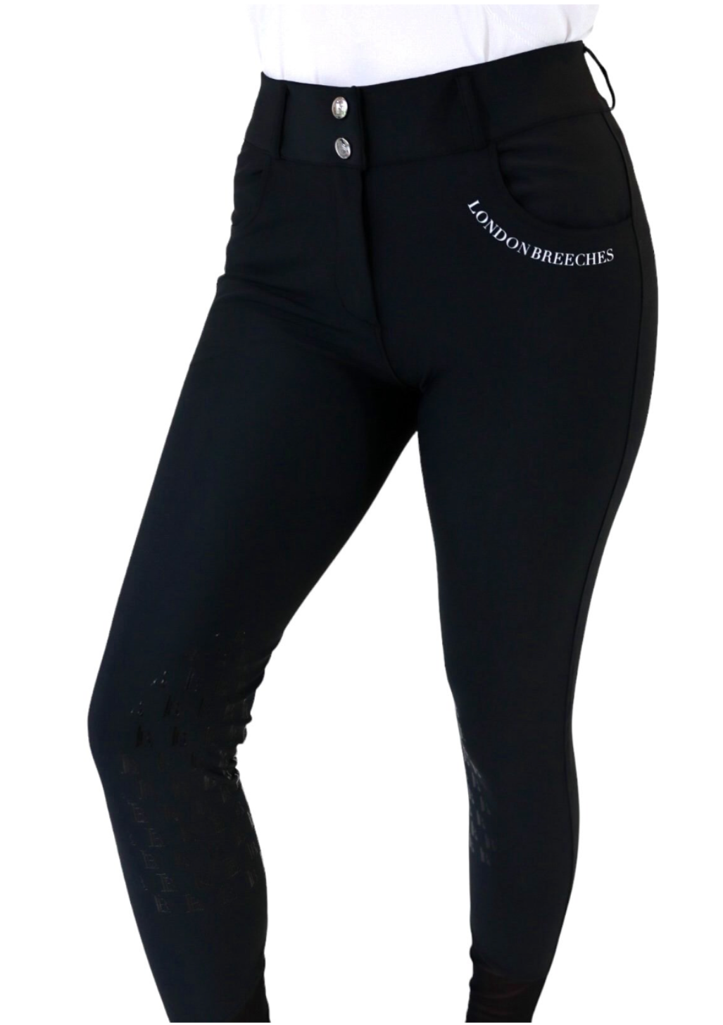 We’ve designed the London Grip Breeches for the best comfort when you ride! These breeches are a mixture between riding leggings and breeches. It has a grip knee patch with four-way stretch and high-rise for the most flattering fit. The mesh lower leg panels are soft and breathable. These breeches feel like a custom fit for all and are fit true to size. They feel great while looking luxurious with belt loops 1.5 inches and front pockets.